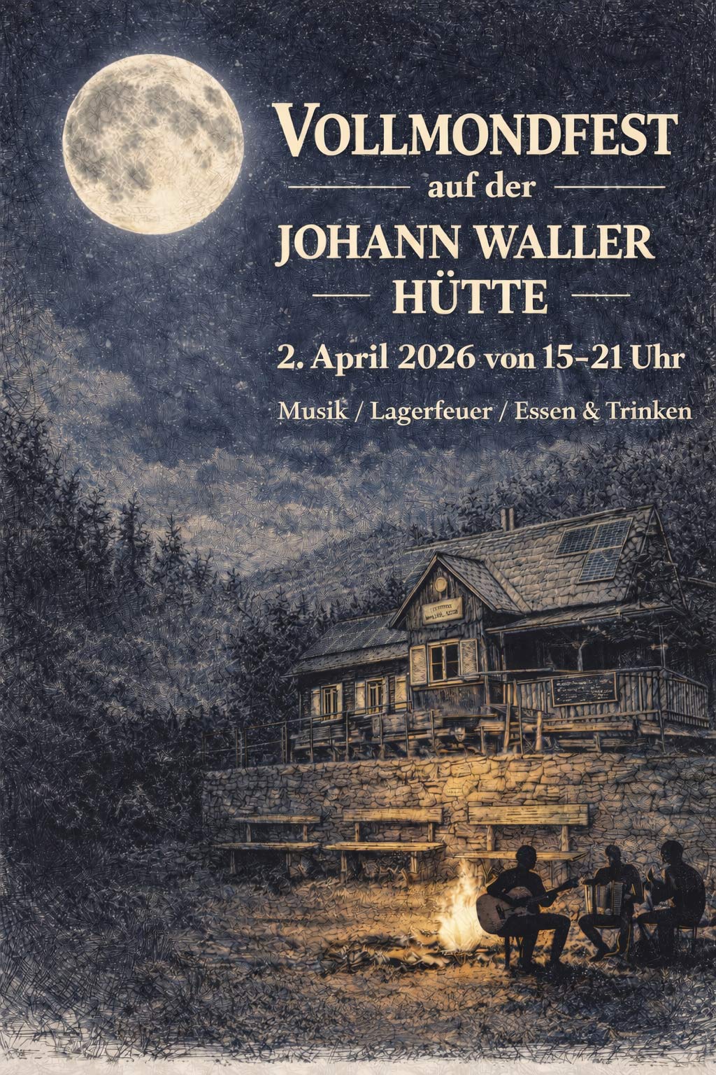 Die Kraft des Mondes am Berg spüren und dazu genießen und feiern. Zu Vollmond bieten wir auf der Terrasse Musik, Getränke und Stärkungen und in der Hütte ein Vollmond-Dinner mit 3 Gängen aus der Region - auf Wunsch natürlich auch gerne vegetarisch/vegan und in gewohnter Slow Food-Qualität. Tanz, Musik und gesellige Runden in der Waldschenke machen das Vollmond-Fest zu einem besonderen Erlebnis.